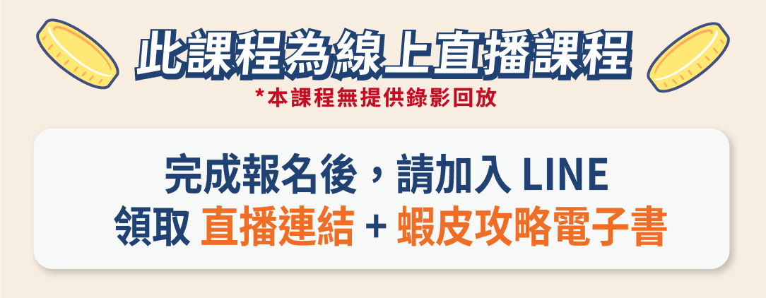 1.【直播課程】退費申請期限:開課前一個工作日中午 12:00 前提出申請,超過時間則該課程報名費用不予退還。